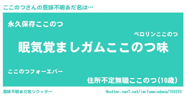 | ヘコむあだ名 | 『ここのつ(笑)』『ここふぇ~』 |