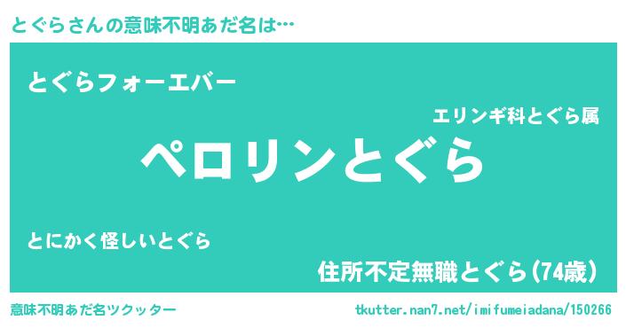 | 胡散臭い通販商品みたいなあだ名 | 『必ず成功する霊験あらたかなお札…その名も「とぐら」』 |