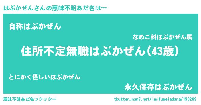 | 伝説のあだ名 | 『古より伝わる暗殺者はぶかぜん』 |