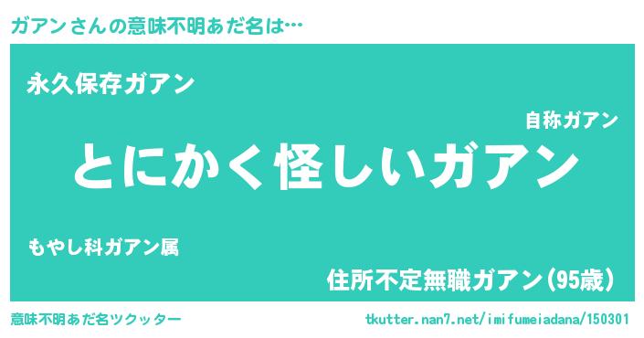 | 男性向けラノベタイトル風あだ名 | 『ダンジョンにガアンを求めるのは間違っているだろうか』 |