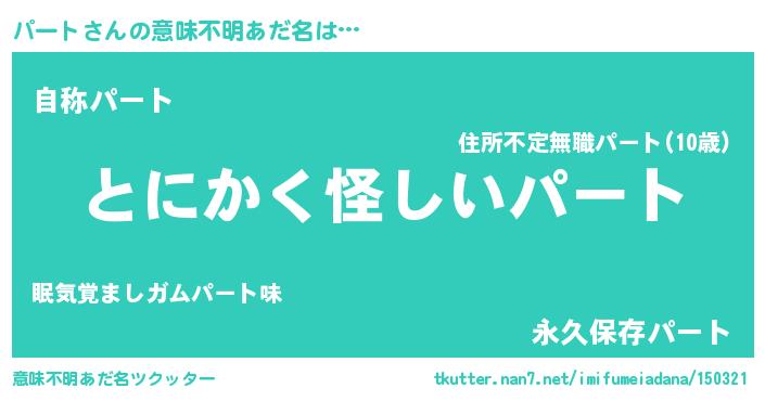 | 男性向けラノベタイトル風あだ名 | 『パートの嫁は女の子じゃないと思った?』 |