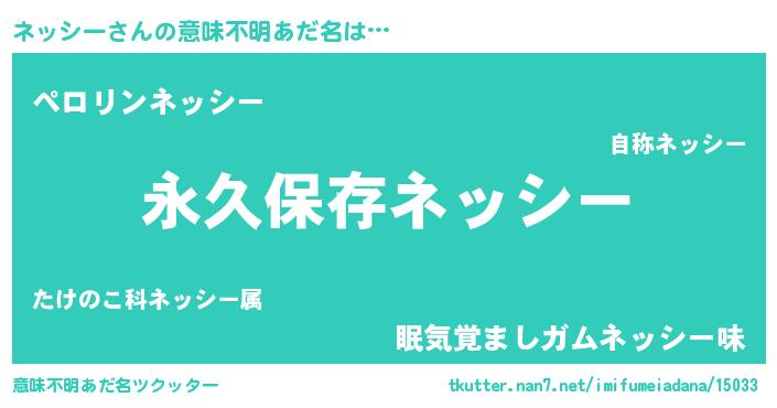 | 男性向けラノベタイトル風あだ名 | 『ネッシーという概念が存在しない退屈な世界 』 |