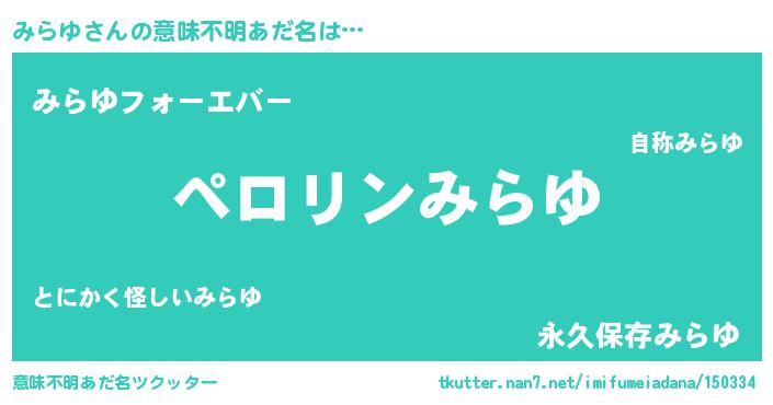 | ヒーロー風カッコイイあだ名 | 『スーパーミラユ』『ウルトラみらゆマン』 |
