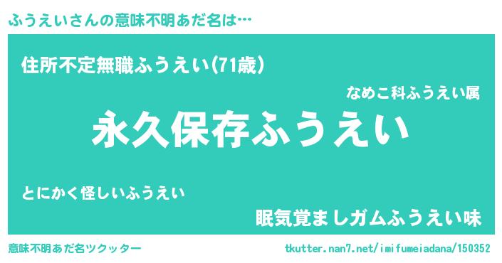 | 男性向けラノベタイトル風あだ名 | 『ふうえいという概念が存在しない退屈な世界 』 |