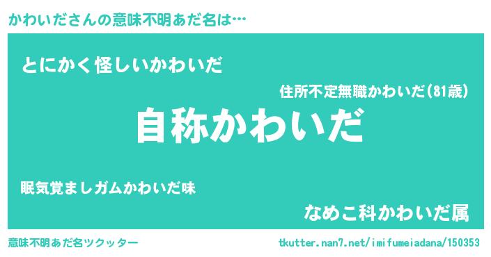 | 欧米人風あだ名 | 『ケンブリッジかわいだ』 |