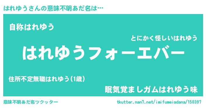 | ファンタジー風あだ名 | 『エターナルハレユウー』『ゼハレトゥ』 |