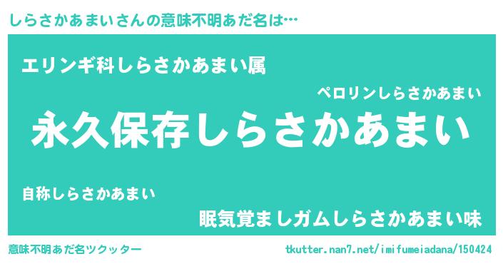 | 男性向けラノベタイトル風あだ名 | 『しらさかあまいに滅ぼされるだけの簡単なお仕事です』 |