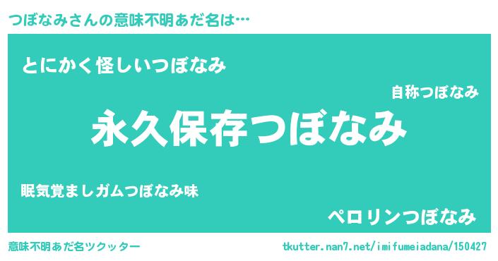 | ヘコむあだ名 | 『つぼなみ(苦笑)』『つぼを』 |