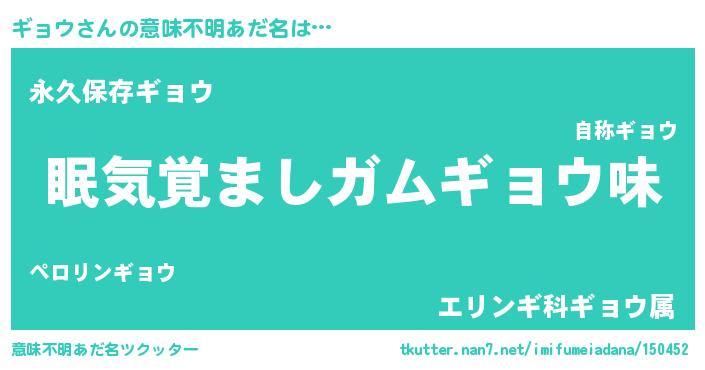 | 男性向けラノベタイトル風あだ名 | 『うちのギョウが世界を掌握している!』 |