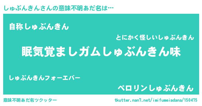 | 欧米人風あだ名 | 『ダニエルしゅぶんきん』 |