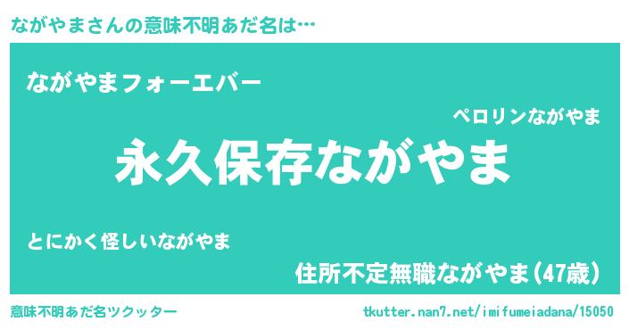 | 男性向けラノベタイトル風あだ名 | 『ながやまという概念が存在しない退屈な世界 』 |