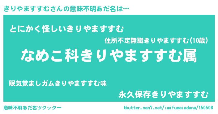 | 男性向けラノベタイトル風あだ名 | 『転生したらきりやますすむだった件』 |