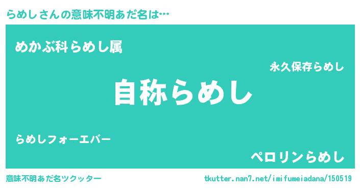 | 恥ずかしいあだ名 | 『ラメシデラックス』『プリティーらめし』 |