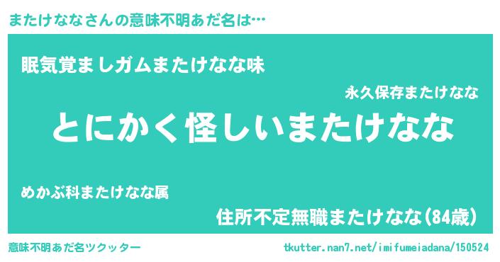 | 女子向けラノベタイトル風あだ名 | 『またけなな様がみてる』 |
