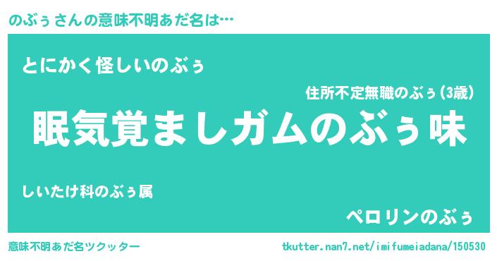 | 男性向けラノベタイトル風あだ名 | 『うちののぶぅが世界を掌握している!』 |