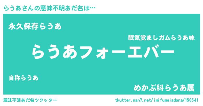 | ヘコむあだ名 | 『酢こんぶ』『らうあ(笑)』『らうお』 |