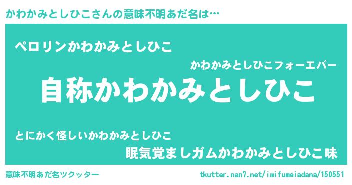 | 肩書あだ名 | 『かわかみとしひこ閣下』 |