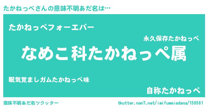 | 男性向けラノベタイトル風あだ名 | 『転生したらたかねっぺだった件』 |
