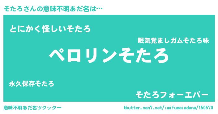 | ヘコむあだ名 | 『そたふぇ~』『そたお』『豆乳』 |