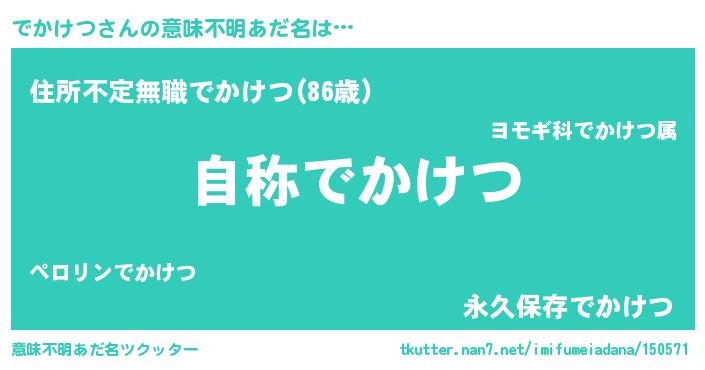 | 女子向けラノベタイトル風あだ名 | 『でかけつなんてお断りですっ。』 |