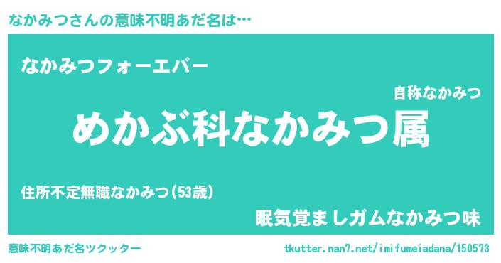 | 男性向けラノベタイトル風あだ名 | 『ナカミツスレイヤー』 |