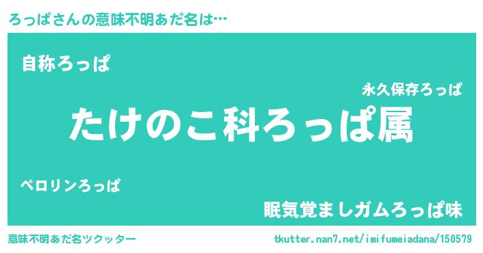 | 胡散臭い通販商品みたいなあだ名 | 『テレビで話題のアガリクス…その名も「ろっぱ」』 |