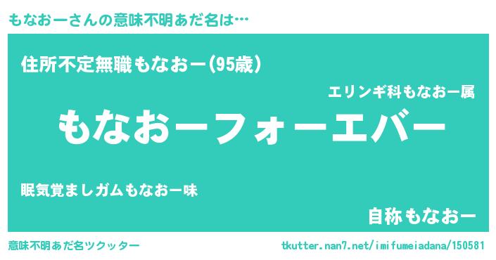 | 男性向けラノベタイトル風あだ名 | 『もなおーに滅ぼされるだけの簡単なお仕事です』 |