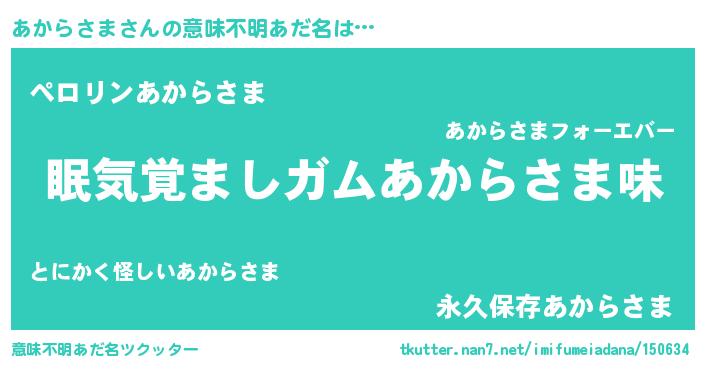 | ヒーロー風カッコイイあだ名 | 『正義の使者あからさま』『魔戒騎士アカ』 |
