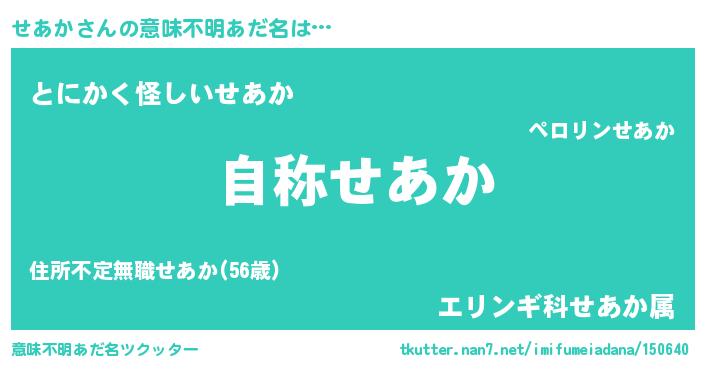 | ヒーロー風カッコイイあだ名 | 『ウルトラ戦士セアカ』『幻影騎士セア』 |