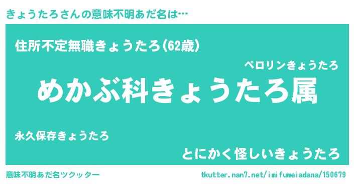 | 男性向けラノベタイトル風あだ名 | 『キョウタロスレイヤー』 |