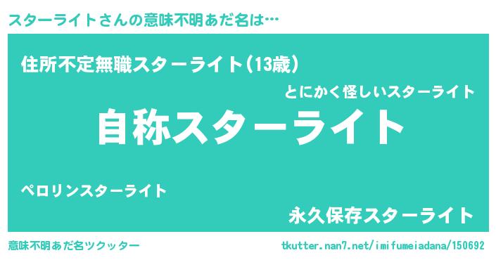 | 女子向けラノベタイトル風あだ名 | 『スターライトアンティーク』 |