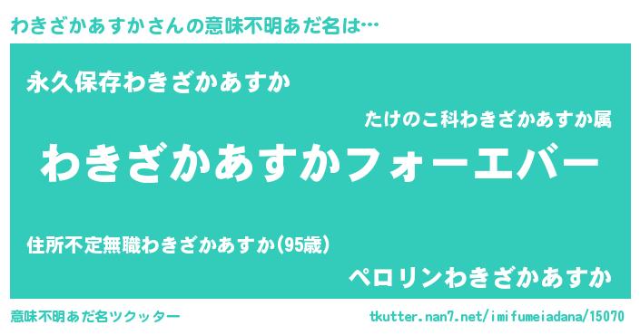 | 欧米人風あだ名 | 『わきざかあすかクリステル』 |