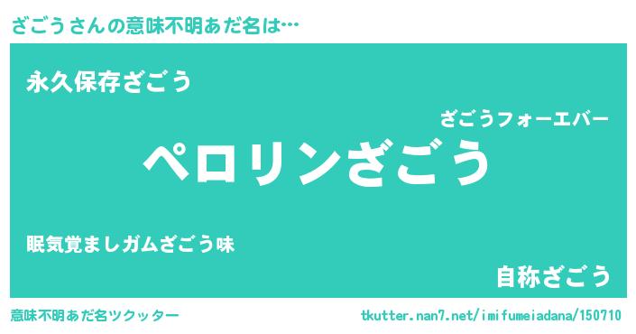 | ヘコむあだ名 | 『ざごにー』『ざごう(笑)』『つくし』 |