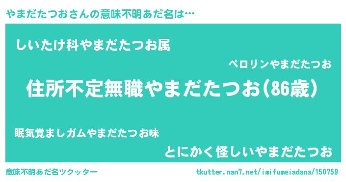 | 男性向けラノベタイトル風あだ名 | 『この素晴らしい世界にやまだたつおを!』 |