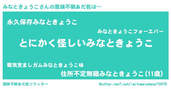 | ポケモン風あだ名 | 『ヒミナトキョウコ』『ゼニミナ』 |