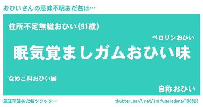 | 男性向けラノベタイトル風あだ名 | 『ノーゲーム・ノーオヒイ』 |