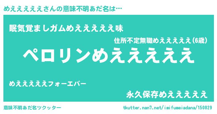| 男性向けラノベタイトル風あだ名 | 『めえええええの憂鬱』 |