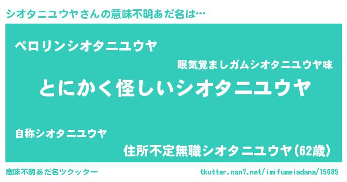 | ポケモン風あだ名 | 『ヒシオタニユウヤ』『シオチュウ』 |
