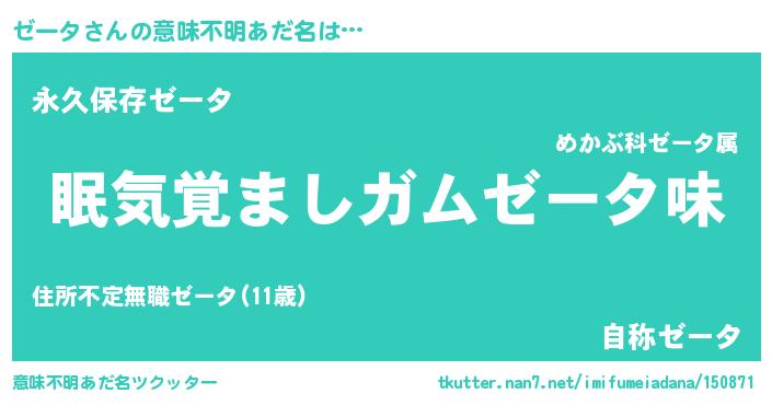 | ヘコむあだ名 | 『ゼータ(苦笑)』『ゼーにゅー』 |
