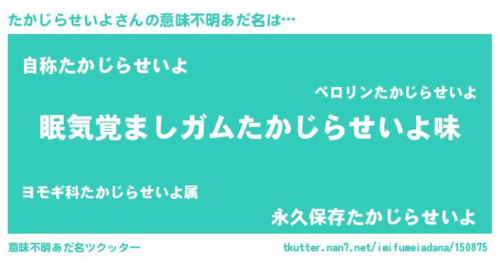 | 男性向けラノベタイトル風あだ名 | 『おまえをオタクにしてやるから、俺をたかじらせいよにしてくれ! 』 |