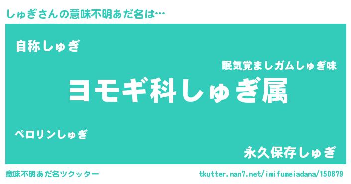 | ヘコむあだ名 | 『しゅぎ(笑)』『しゅふぇ~』 |