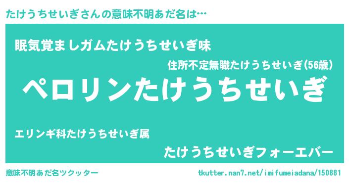 | 男性向けラノベタイトル風あだ名 | 『たけうちせいぎの憂鬱』 |