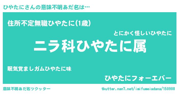 | ヒーロー風カッコイイあだ名 | 『仮面ヒヤダー』『ウルトラひやたにマン』 |