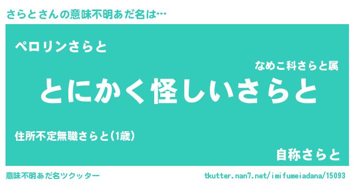| 男性向けラノベタイトル風あだ名 | 『はたらくさらとさま!』『さらとの憂鬱』 |