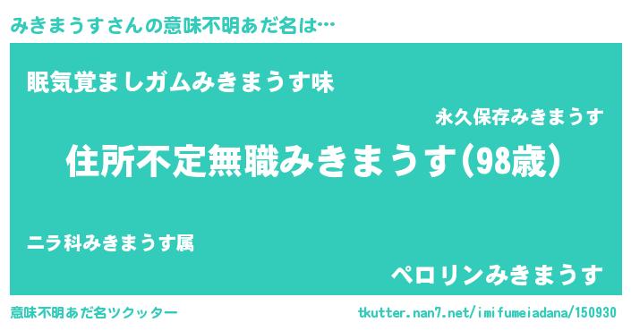 | 男性向けラノベタイトル風あだ名 | 『この素晴らしい世界にみきまうすを!』 |