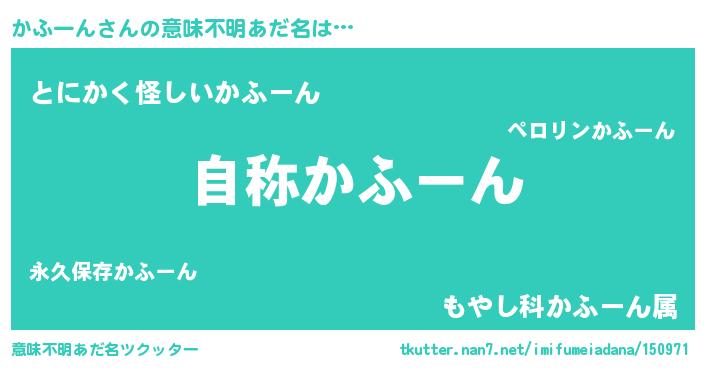 | 男性向けラノベタイトル風あだ名 | 『Re:かふーんから始める異世界生活』 |