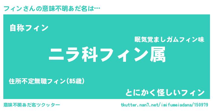 | ヒーロー風カッコイイあだ名 | 『最強戦士フィン』『幻影騎士フィ』 |
