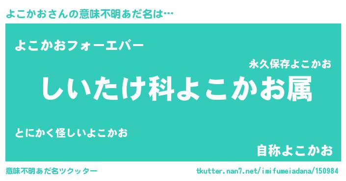 | 男性向けラノベタイトル風あだ名 | 『ヨコカオスレイヤー』 |