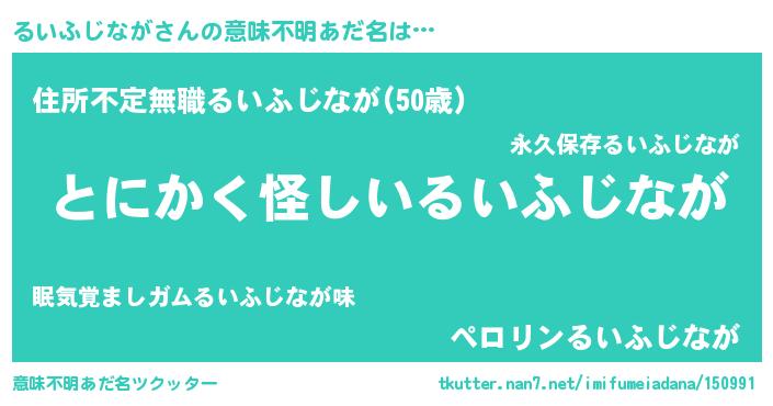 | 男性向けラノベタイトル風あだ名 | 『るいふじながの嫁は女の子じゃないと思った?』 |