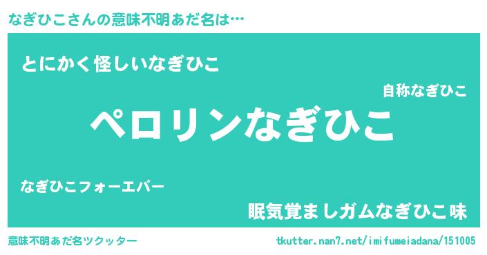 | 男性向けラノベタイトル風あだ名 | 『ナギヒコアートオンライン』 |